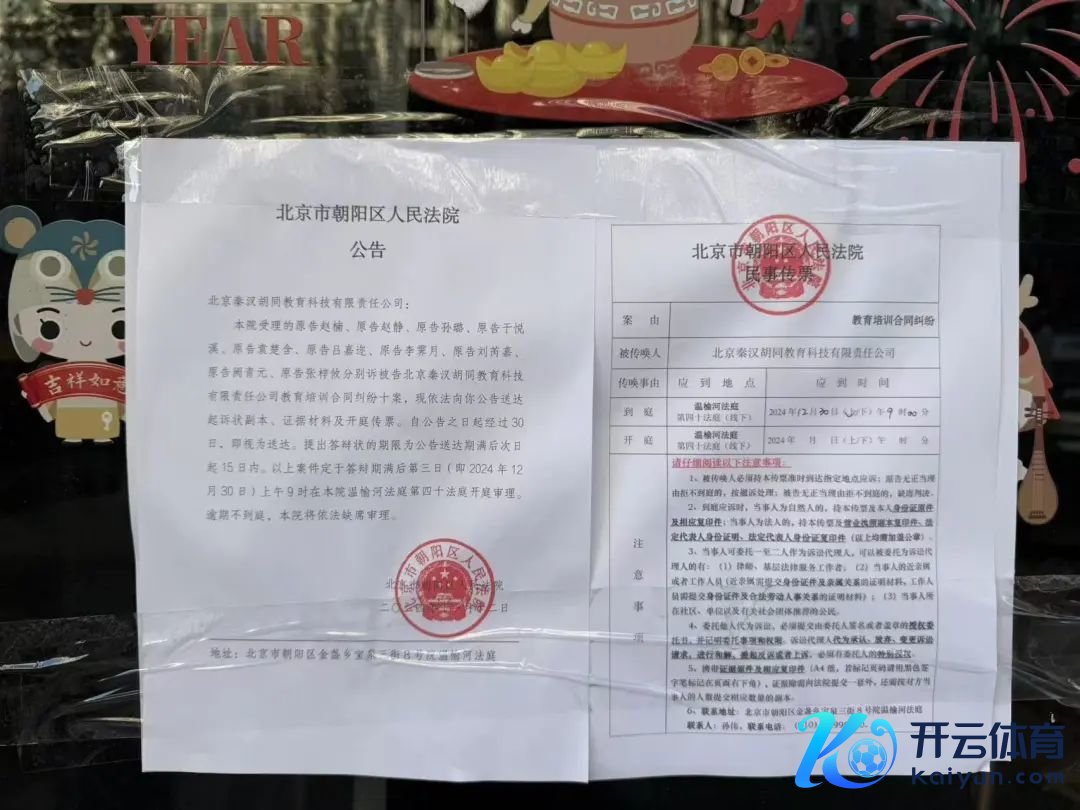 其中天鹅湾分馆里面照旧有房主重新装修,校区门上贴着有多位滥用者聚积上诉的北京市向阳区东谈主民法院对该培训机构“证明培训合同纠纷”的民事传票,预测于12月底开庭审理。