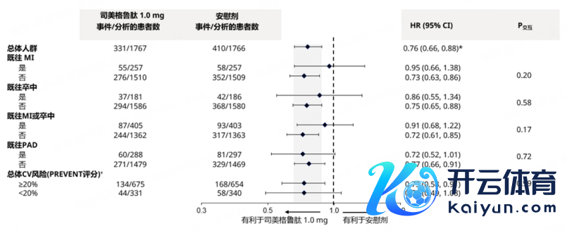 这项二次分析中,司好意思格鲁肽1.0mg镌汰MACE风险的作用在不同基线CKD景色的患者东说念主群中具有一致性(P交互>0.05,图8)[13],为在不同严重进程CKD患者中使用司好意思格鲁肽以镌汰MACE风险提供了有劲把柄。