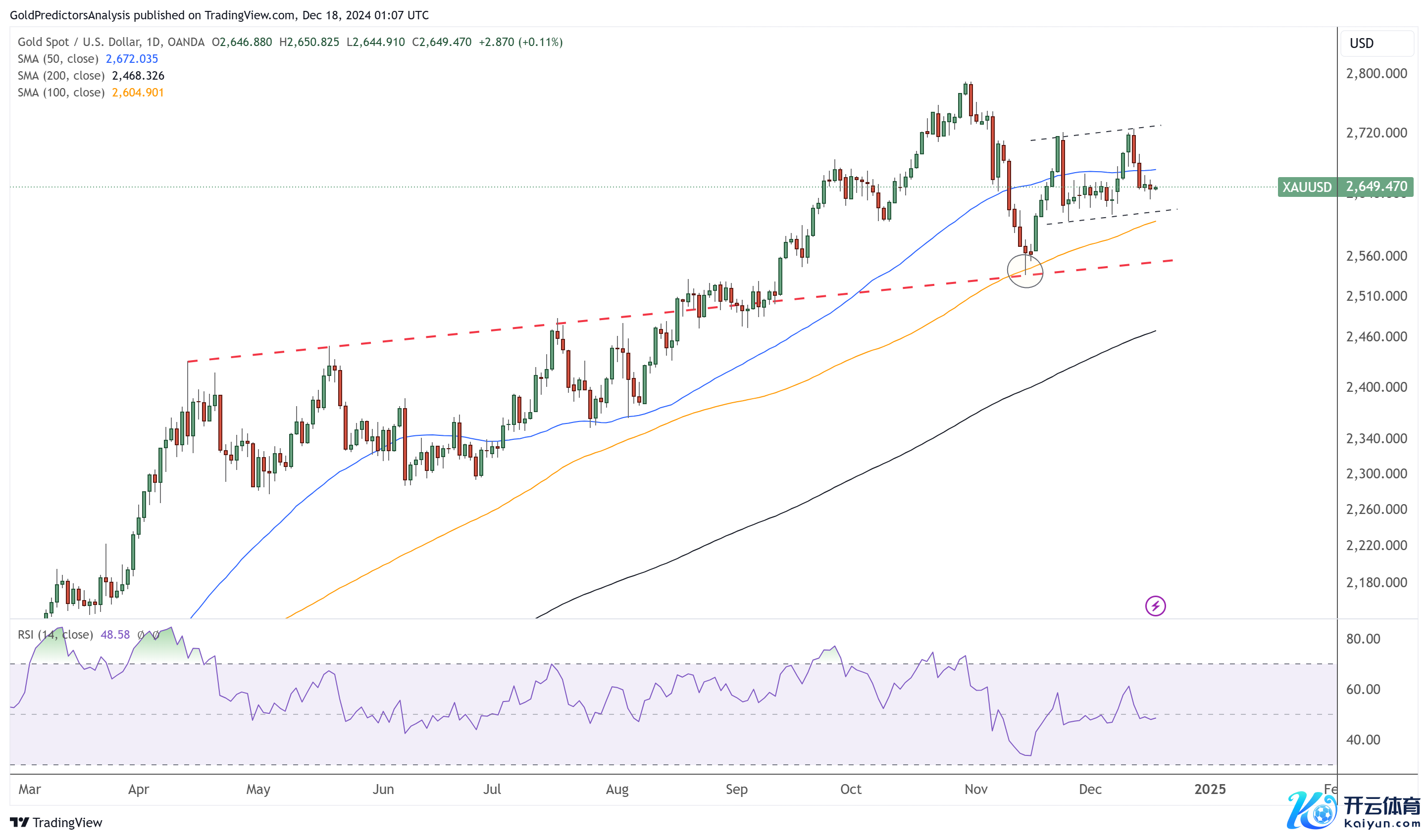 黄金日线图显现,价钱在50日均线隔壁波动,并保执在100日和200日均线上方。12月窄幅区间盘整可能是由于流动性较弱。尽管出现这些波动,但总体趋势仍然进取。径直阻力位在2720好意思元,而2790好意思元是黄金市集进一步高潮的拦截。今天的好意思联储会议可能会注入苍劲的波动性。关系词,要进一步高潮,必须冲突2720好意思元。