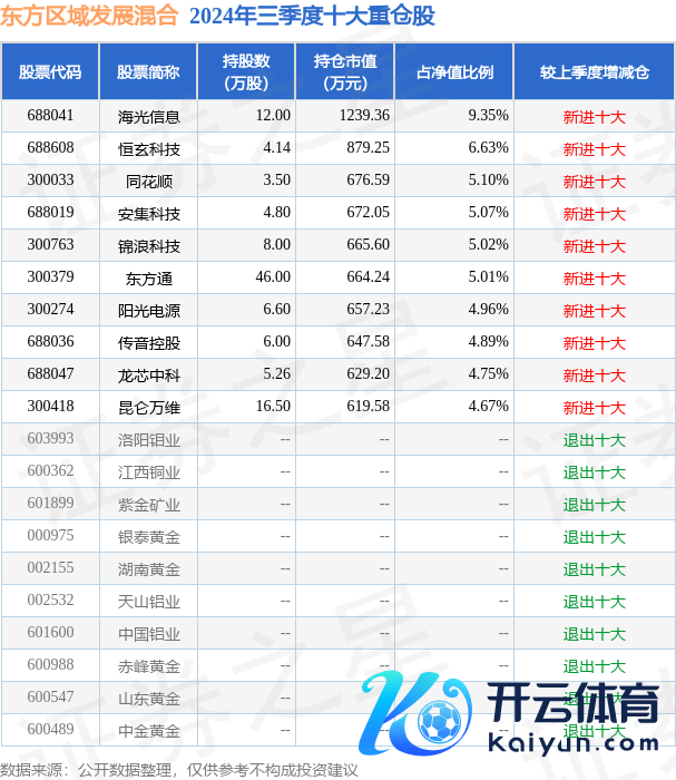 东方区域发展搀杂为搀杂型-机动基金,凭证最新一期基金季报走漏,该基金金钱确立:股票占净值比94.94%,债券占净值比5.27%,现款占净值比2.07%。基金十大重仓股如下: